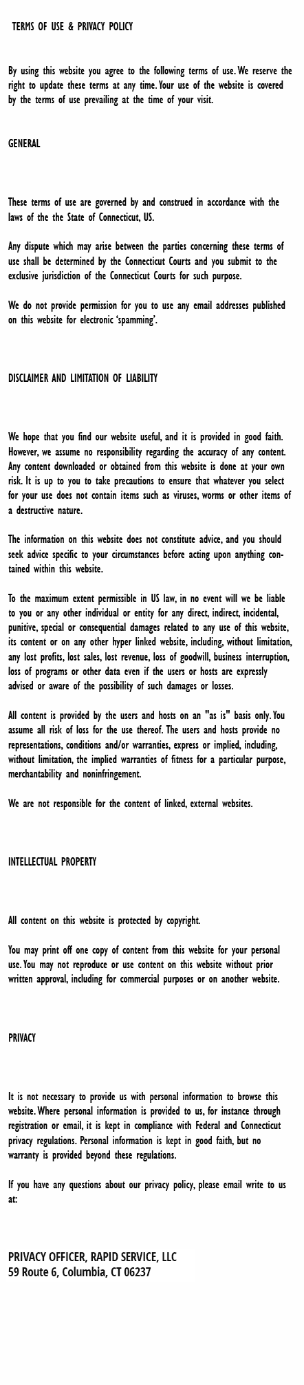 • My wife and I own and operate a Bed & Breakfast in our home in Scotland, CT. For a number of years we have used Rapid Service for all our electrical, plumbing, and heating needs. Most recently we had Rapid Service replace a malfunctioning kick heater in our Guest Game Room...